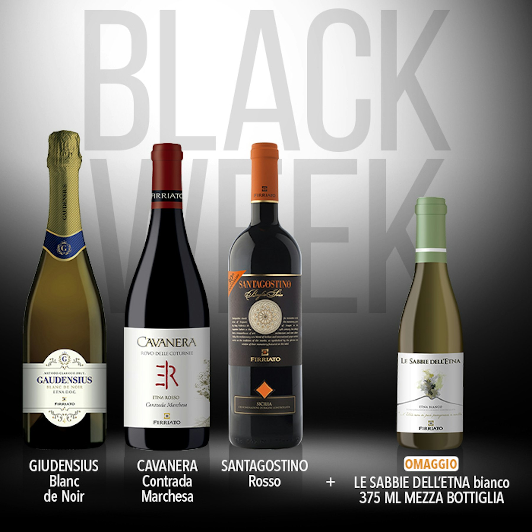 Entscheiden Sie sich für den Mix 3 Black Week und erhalten Sie sofort eine Flasche „Le Sabbie dell'Etna Bianco 375 ml” gratis dazu.