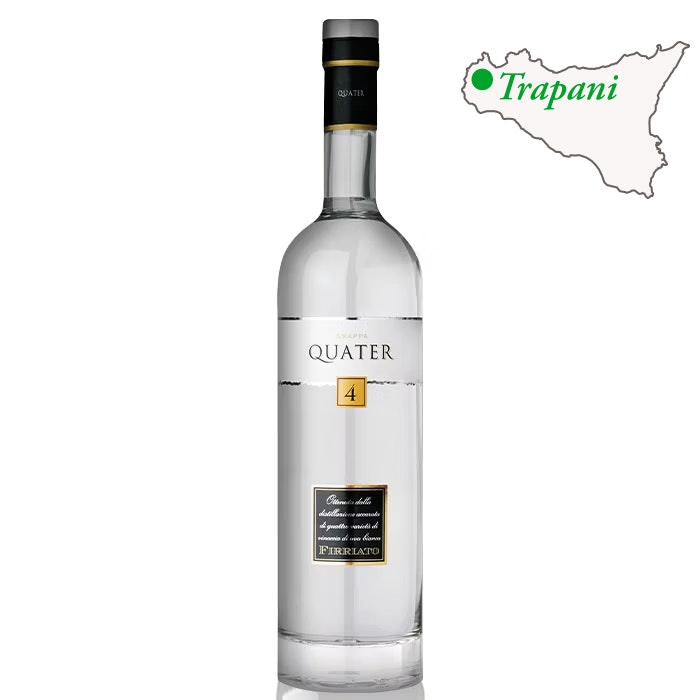 Quater is a modern grappa with a soft aromatic bouquet. A highly developed distillate aimed at a discerning international audience, no longer used to the traditional grappa. It is a acquavite that is refined and attentively treated in every aspect of its production.